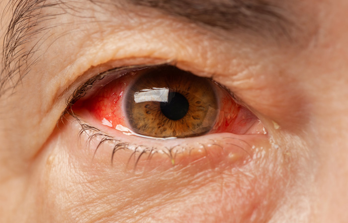 A red, gritty-feeling eye usually indicates infective conjunctivitis, which may be either viral or bacterial in origin. Gow says that pharmacists should check for the following symptoms as well as how rapidly they are progressing: