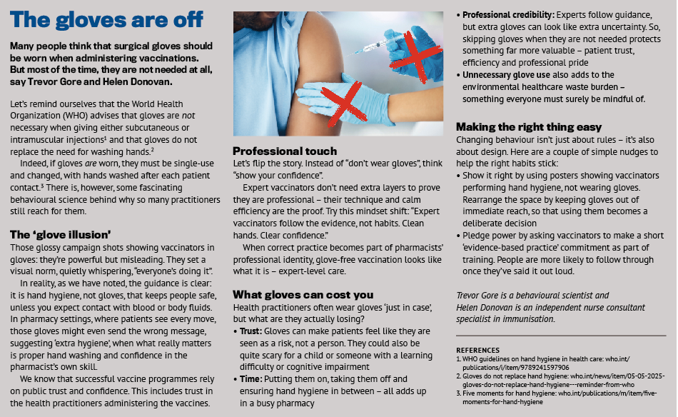 “Pharmacy teams providing vaccination services have to undertake annual update training and consider whether they need to repeat face-to-face training on injection technique and basic life support, as well as reviewing service specifications and pharmacy SOPs each year,” says Buxton.
