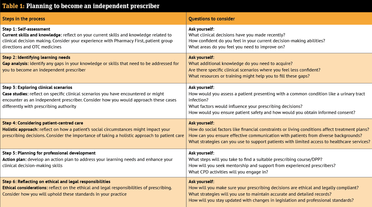 The shift to independent prescribing will necessitate further enhancement of these skills (see Table 1).