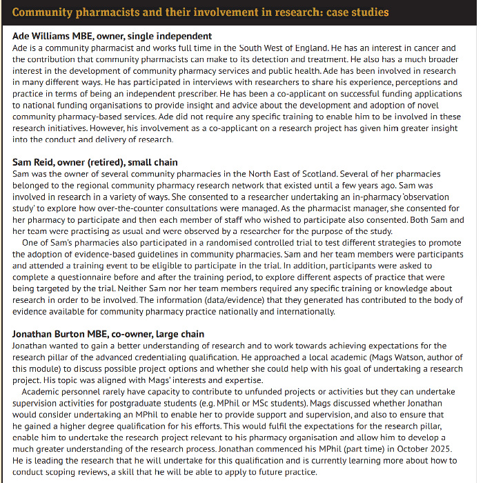 Imagine that you and your team have been asked to be a study site for a multi-site research project. It already has full ethical approval and will involve observing the pharmacy team and their interactions with members of the public who ask about healthy living topics. What are the four main things that will contribute to your decision about whether or not to take part?