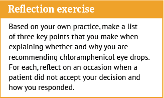 Chloramphenicol (as 0.5% eye drops) remains the most commonly supplied antibiotic under PGDs. Its broad spectrum of activity, low resistance rates and minimal systemic absorption make it suitable for short-term use in uncomplicated bacterial conjunctivitis.