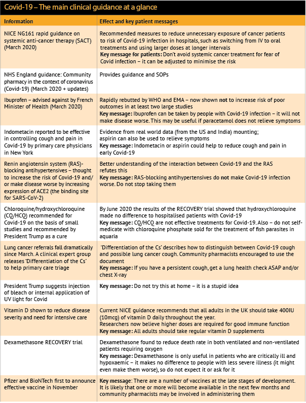 There have now been thousands of articles and papers published relating to Covid-19. Indeed, one of the problems of 2020 is that the Covid-19 juggernaut swept everything else to the sidelines. So here are some of the key pieces of Covid-related research findings and information of relevance to community pharmacists.