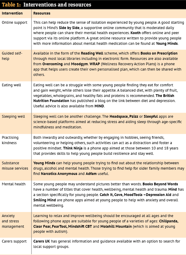 A selection of resources to help young people manage concerns around their mental health, medication, healthy living, alcohol and recreational drug use are listed in Table 1.