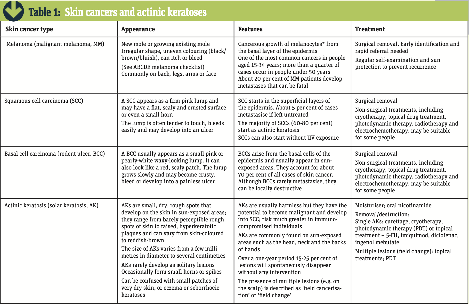 *Non-cancerous growth of melanocytes causes melanocytic naevi (moles and freckles)