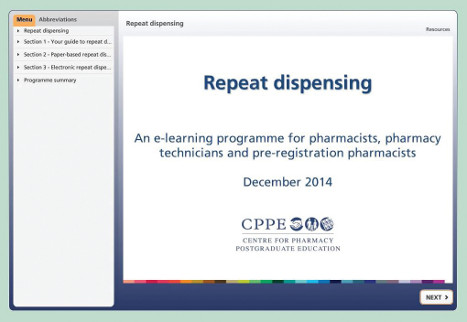 The programme, which is suitable for the whole pharmacy team, guides users through the use of paper- based and electronic repeat dispensing, using interactive activities including videos and case studies.