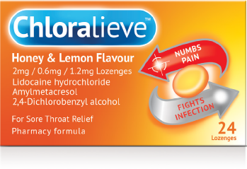Name of product and active ingredients: Chloralieve Honey & Lemon Flavour Lozenges 2mg Lidocaine / 0.6mg Amylemetacresol/ 1.2mg Lozenges 2,4-Dichlorobenzyl Alcohol.