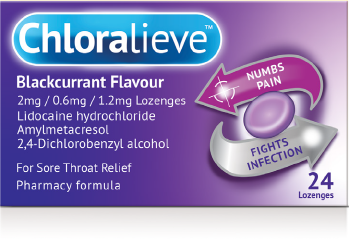 Name of product and active ingredients: Chloralieve Blackcurrant Flavour 2mg / 0.6mg / 1.2mg Lozenges 2.00mg Lidocaine / 0.60mg Amylemetacresol/ 1.20mg 2,4-Dichlorobenzyl Alcohol