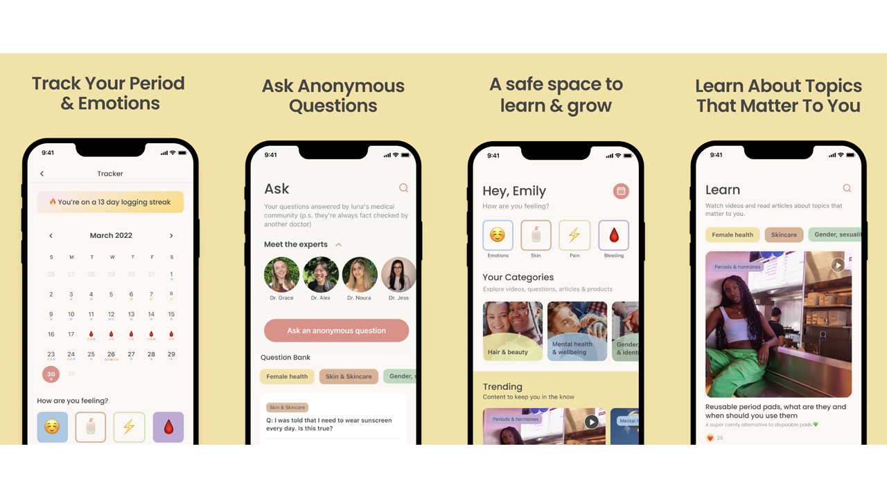Built by medical professionals, adolescence experts and teens across the UK, Luna covers topics such as skincare, body positivity, gender, sexuality and mental health with videos, articles and shared experiences.
