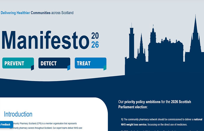 Community Pharmacy Scotland has launched its 2026 Manifesto ahead of elections to the Scottish Parliament next year. It sets out its ambitions for how Scotland’s 1,200 community pharmacies can help transform the nation’s health.