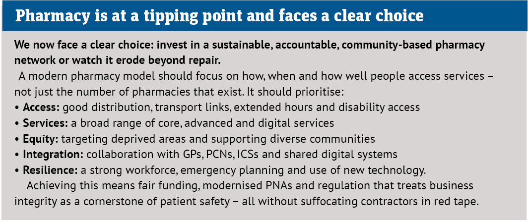 The value that community pharmacy brings cannot be emphasised enough, but it is often only recognised at breaking point, when a branch closes or when wider healthcare systems become overwhelmed. Every lost pharmacy weakens local capacity, disrupts continuity of care, and depletes community resilience.