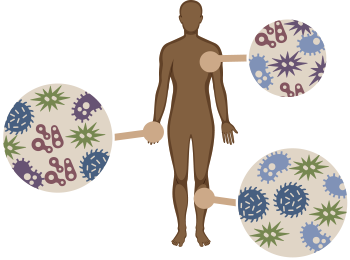 differs by body area. Differences in skin temperature, texture, thickness, humidity and chemistry help determine which kinds of microbes live where on the skin.3