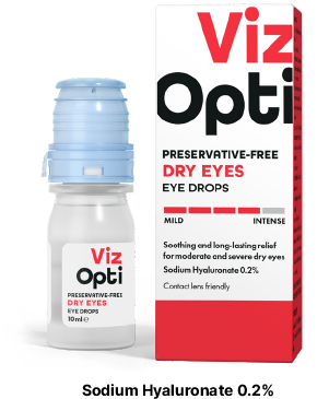 VizOpti Dry Eyes eye drops (sodium hyaluronate 0.2%) are particularly suitable for those suffering from moderate to severe dry eyes. They are contact lens friendly and can be used within up to 90 days of opening. As mentioned in the video, unlike other formulations, the chemical attribute of the long-chain hyaluronic acid found in this formulation provides long lasting moisture and protection for dry eyes by forming a stable viscous film.6