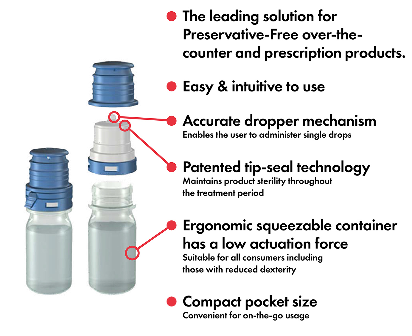 A leading solution for preservative-free prescription and over-the-counter products. Featuring proven microbiological integrity and with an outstanding track record of more than 500 market references worldwide, it is the technology of choice for multidose, preservative-free systems in eye care.