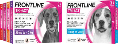 FRONTLINE Tri-Act FOR DOGS is a spot-on treatment containing fipronil and permethrin.
