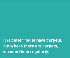 - It is better not to have carpets, but where there are carpets, vacuum them regularly.