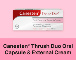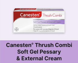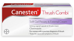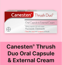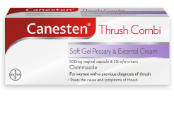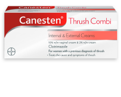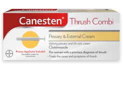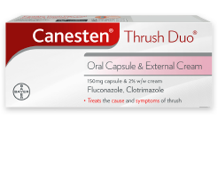 †Canesten® brand offers combined treatment in Canesten® Thrush Duo and Canesten® Thrush Combi products.