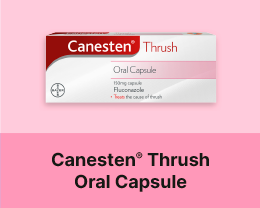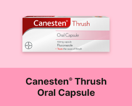 Fluconazole is available OTC as an oral capsule and is indicated to treat acute or recurrent thrush. It can also be used for the treatment of partners with associated candidal balanitis (thrush of the penis head).
