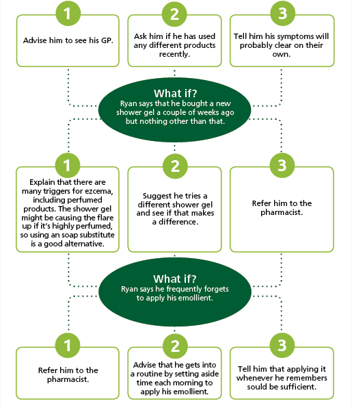 Ryan is in his 20s and has been using emollients for a while but now he says something doesn’t seem right. Recently his eczema seems to have got worse and now his skin is itchy and inflamed.