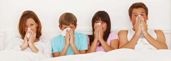 Because the virus infects the upper respiratory tract, this is where the main symptoms of a cold occur. A blocked or runny nose, sneezing, cough, sore throat, loss of taste and smell, watery eyes and a feeling of pressure in the ears are all common symptoms.
