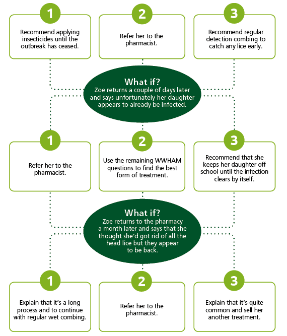 Zoe comes into the pharmacy looking worried and asking for advice. She says that there has been an outbreak of head lice in her daughter’s school and she wants to prevent her getting an infection.
