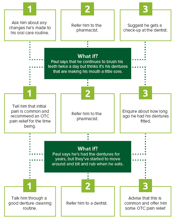 Paul comes into the pharmacy seeking some relief for oral pain. He says his gums are feeling sore.